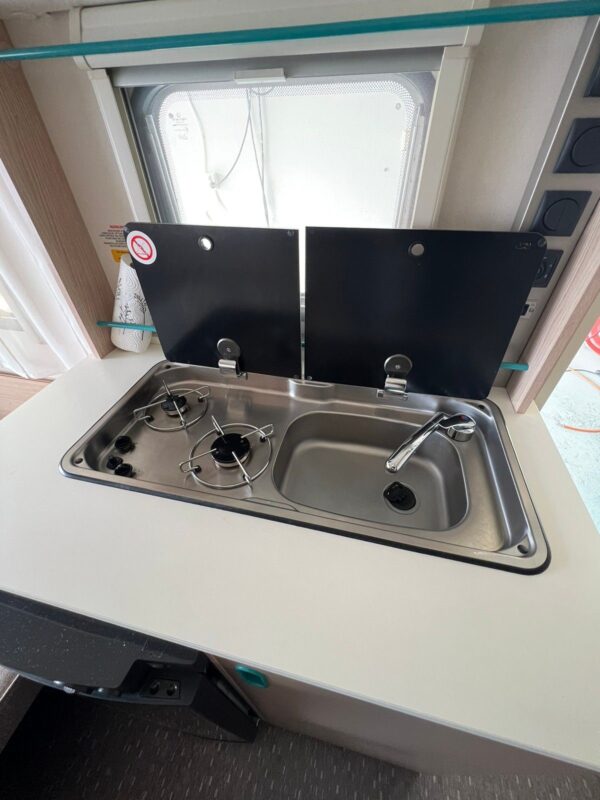 Caravane 1000 kg de poids total et 207 cm de largeur, il peut être remorqué avec la plupart des voitures. Belle alternative au camping camplet/combi. Livré avec matériel de cuisine, petit four, plaque à induction et petit auvent et auvent. Des chaises et des tables peuvent également être incluses.