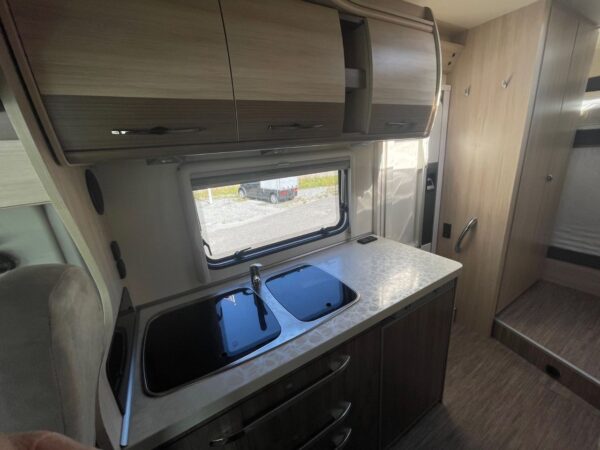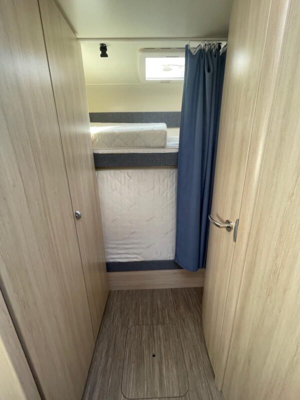 Lit superposé pratique à l’arrière avec possibilité de rabattre le lit pour augmenter la hauteur dans l’espace de chargement.