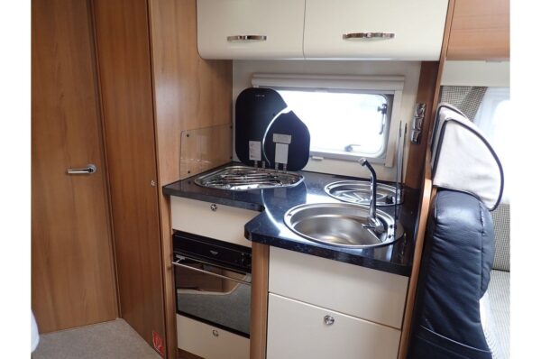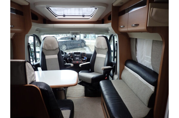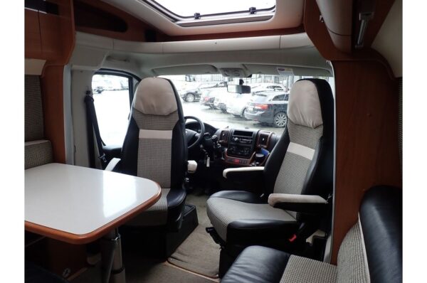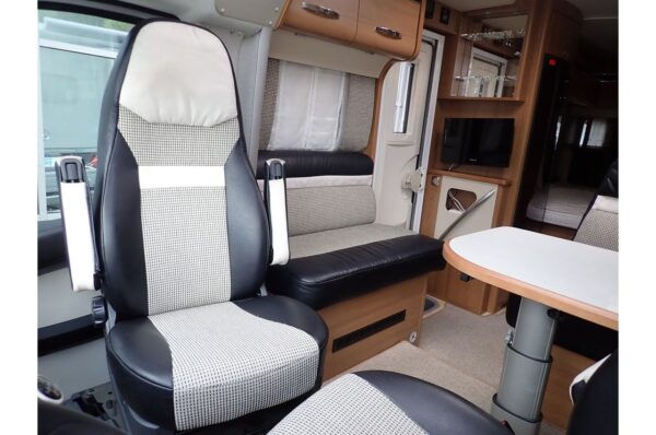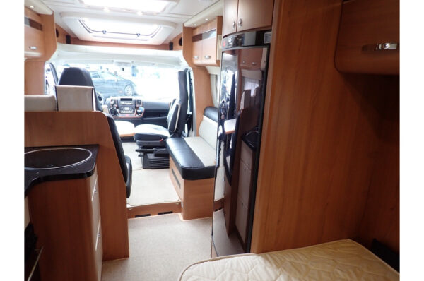 Equipements : Intérieur en partie cuir, climatisation automatique, caméra de recul, TV + antenne, four, ventilateur plafonnier au-dessus du lit, pieds de support arrière, grand frigo, ABS, ASR, alarme NX5, électrique.